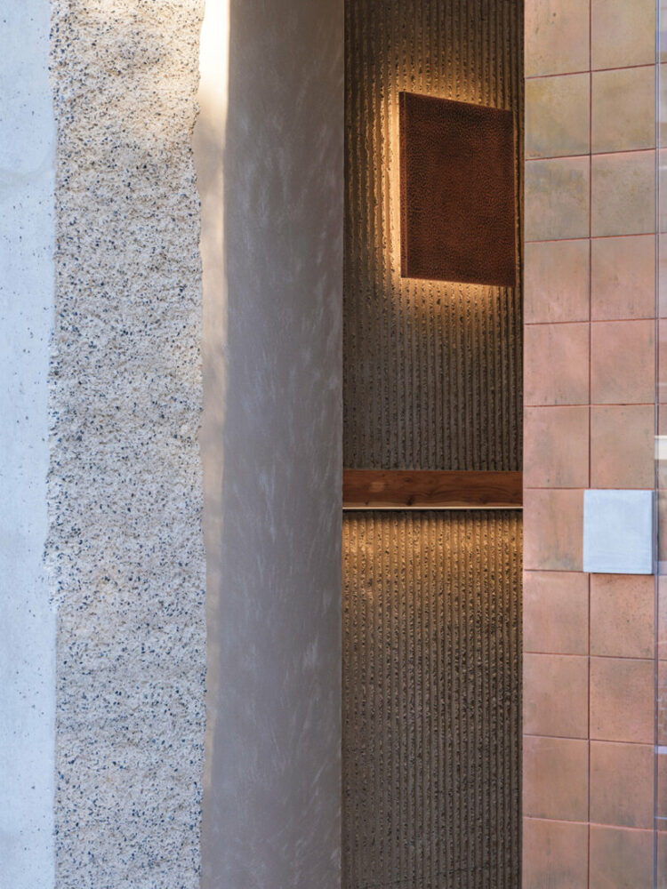 when closed, the hand-hammered copper plate forms a vivid contrast with the bustling market