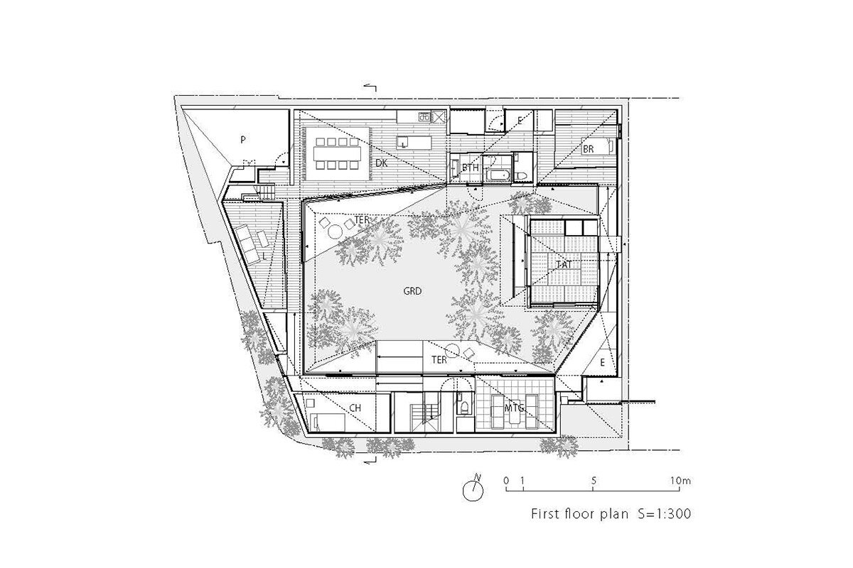 a continuation of the existing rock formations, the hotel is articulated as a series of stepped horizontal planes, courtyards, and gardens.