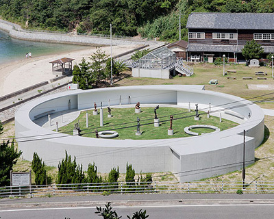 sculptures on cylindrical concrete pedestals of various heightsimage ©