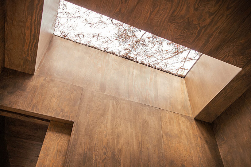 the project sits like a ring placed over the terrain, with its funnel-like roof forming a shaded perimeter walkway and an introverted core.