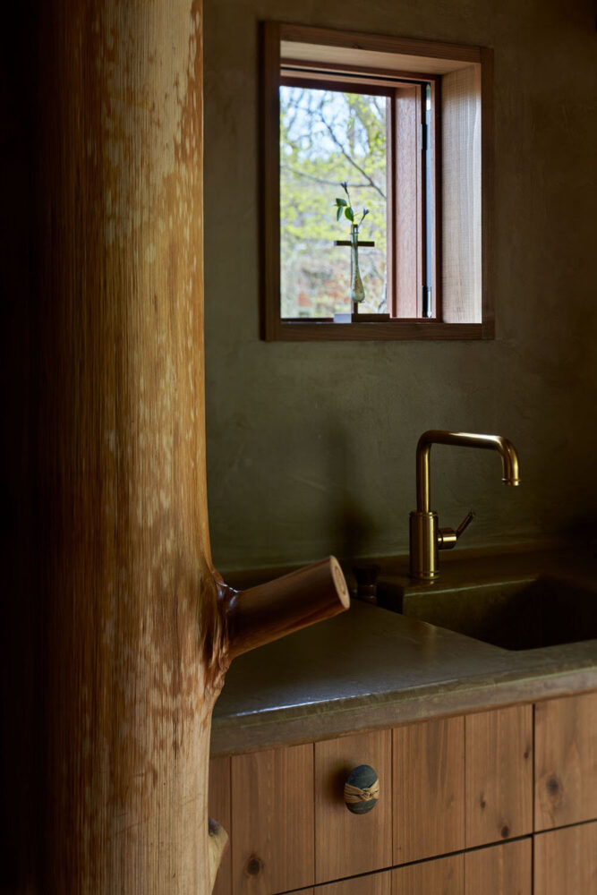 the project sits like a ring placed over the terrain, with its funnel-like roof forming a shaded perimeter walkway and an introverted core.