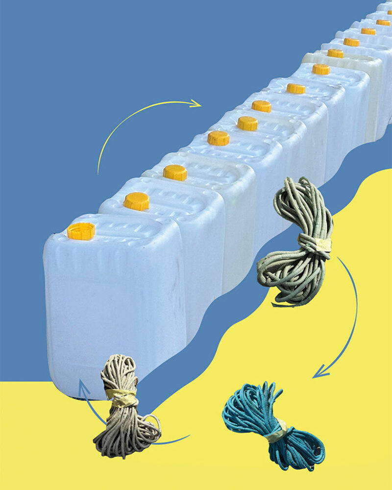 the project sits like a ring placed over the terrain, with its funnel-like roof forming a shaded perimeter walkway and an introverted core.