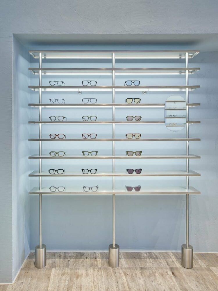 tubular stainless-steel elements serve as monolithic blocks for furniture, mirrors, shelves, and stairs