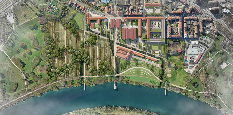 the restoration of historic railway tracks creates pedestrian paths linking key areas