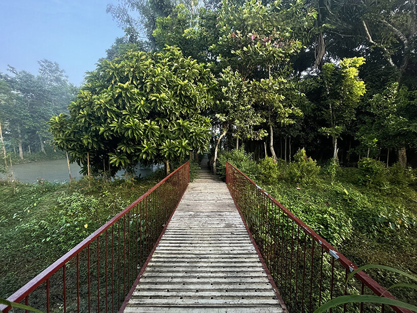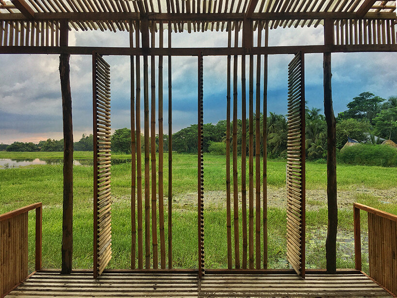 made of wood + bamboo, this restaurant pavilion in bangladesh adapts to monsoon season