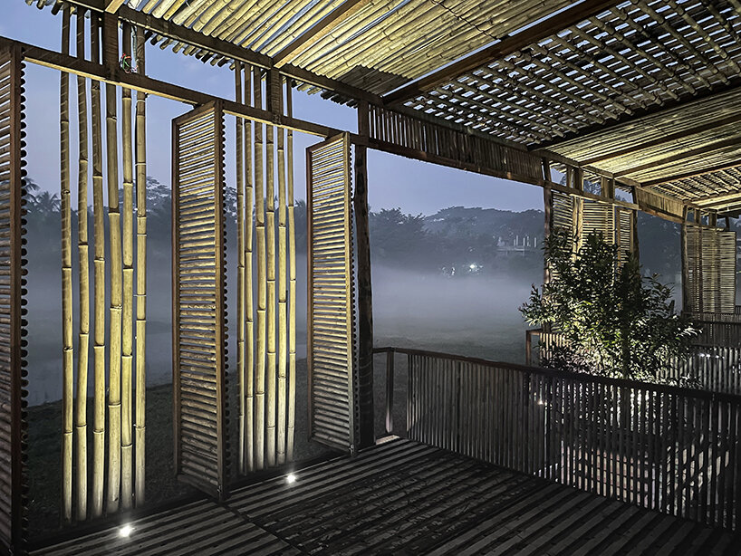Based on its observations, TFS designed a lightweight, see-through structure bringing in plenty of natural ventilation and lighting. To ensure a certain level of privacy from local farmers harvesting nearby and protect users from summer heat, the studio introduced operable bamboo screens along the longitudinal sections. That said, all facades are designed to keep a maximum portion of them open during monsoon season, as harvesters won’t be working the fields by then.
