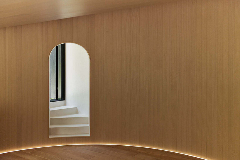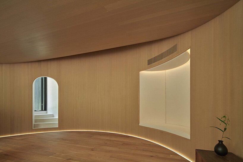 curving walls direct the gaze toward the window, the focal point of the interiors