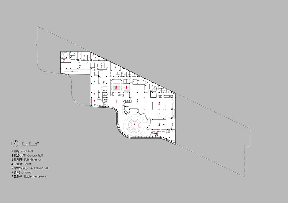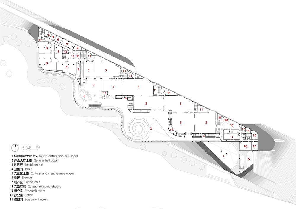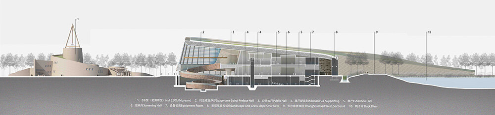 the layout integrates the new museum and visitor center into a unified entity