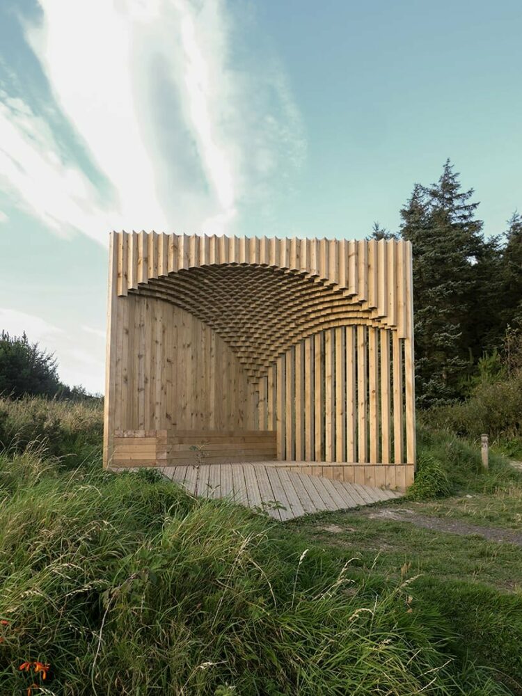 UNESCO biosphere shelter conrhenny utilizes local timber for shelter in isle of man