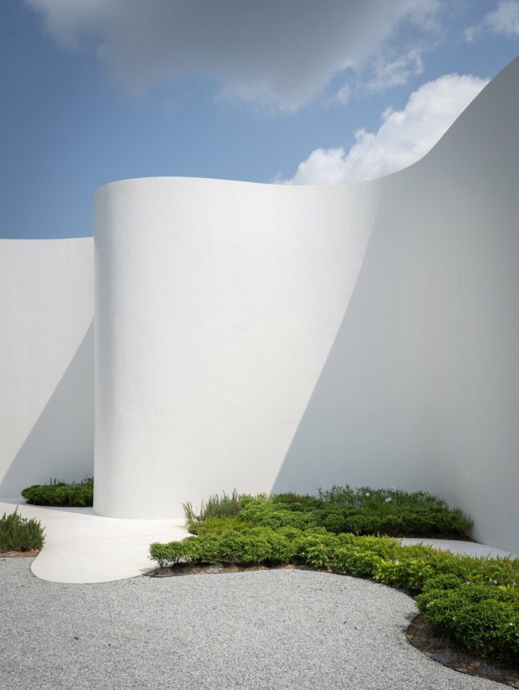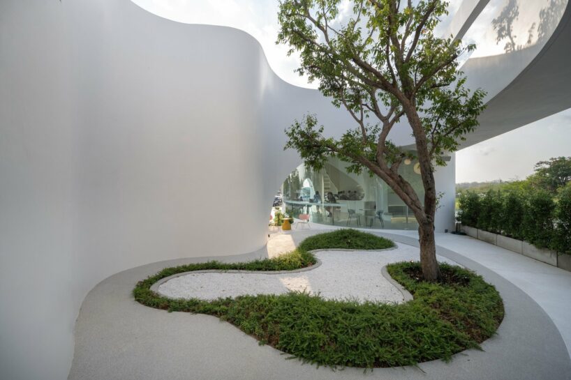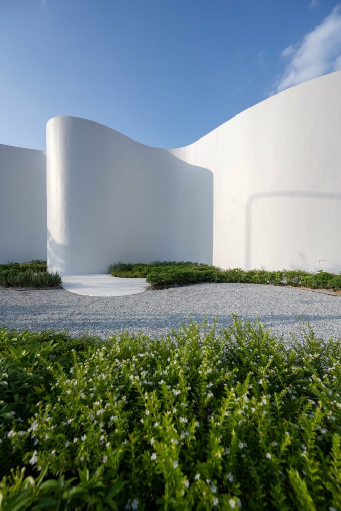 the architectural layout maximizes the site’s shape, extending into three distinct zones