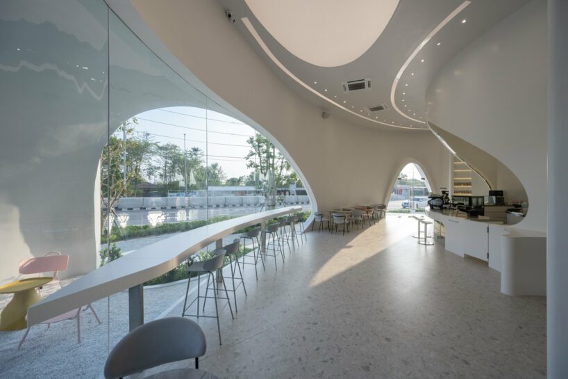 located on Khao Lam Road in Chonburi, Uncloud Café occupies a triangular site with mountain views