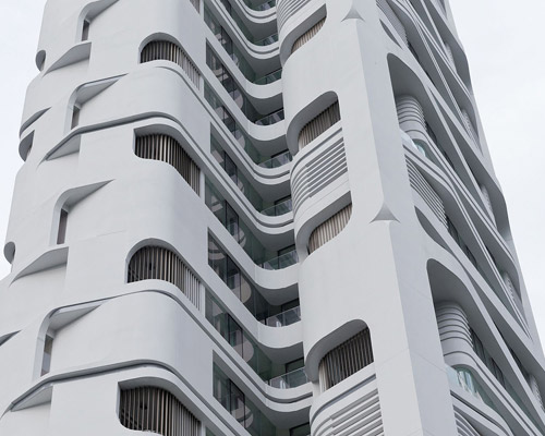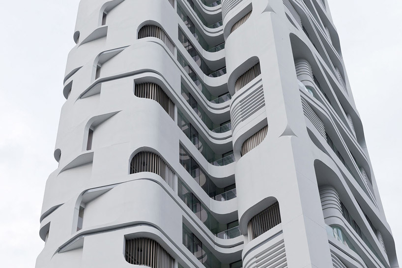 ‘the highly textural façade of the ardmore residence works in unison with the organization of the individual apartments, affording both extensive daylight to the unique residential spaces and panoramic views over the city of singapore. the façade further generates a unique reading of the building in the neighborhood, with its layered contours extending the appearance beyond four façades and providing a variety of profiles and perspectives.’ ben van berkel, a founding principal of UNStudio