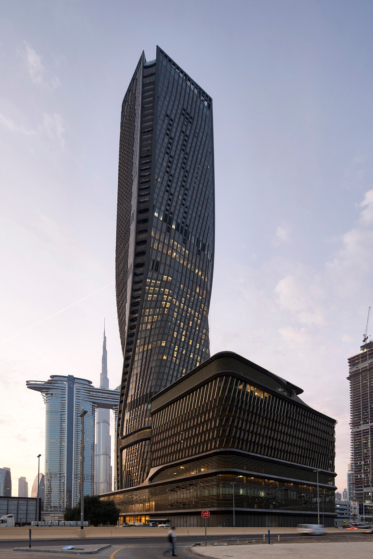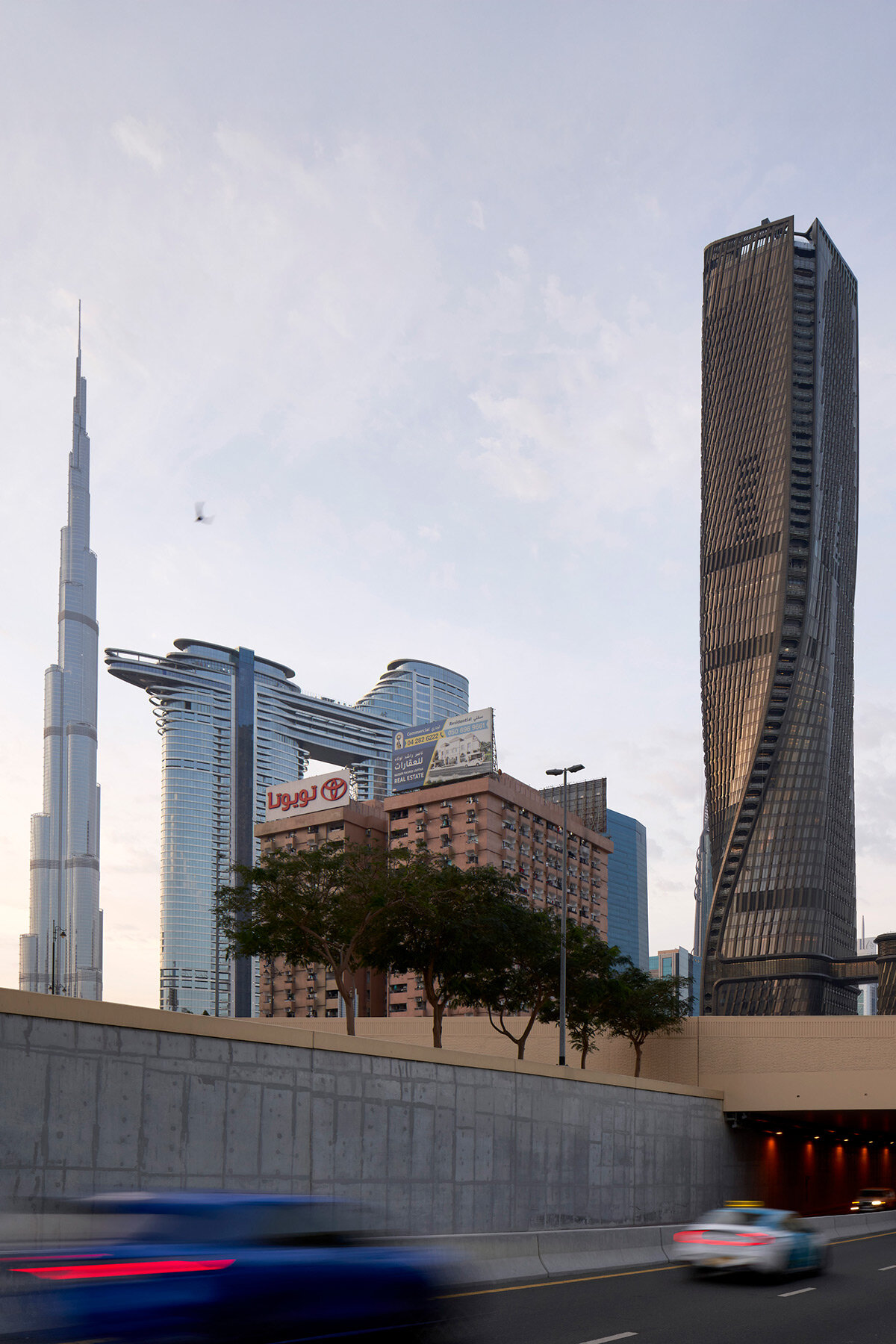 the tower is located on Sheikh Zayed Road between Burj Khalifa and City Walk