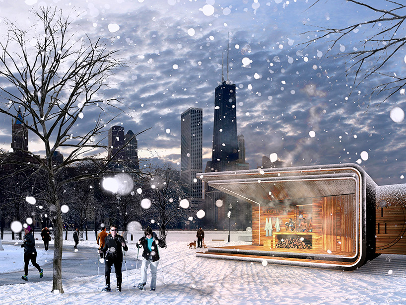 urban therme spa chicago lakefront kiosk competition proposal  designboom