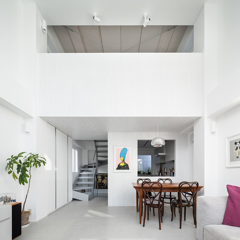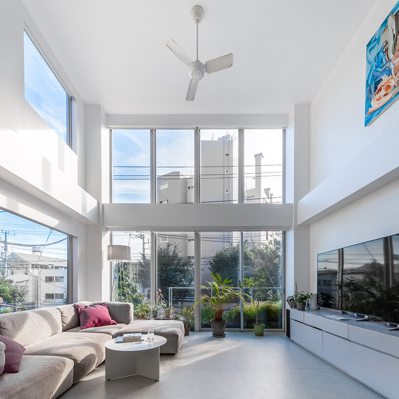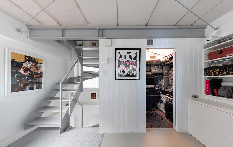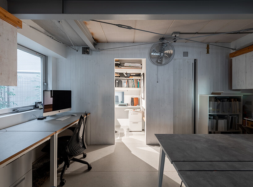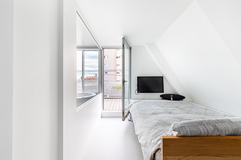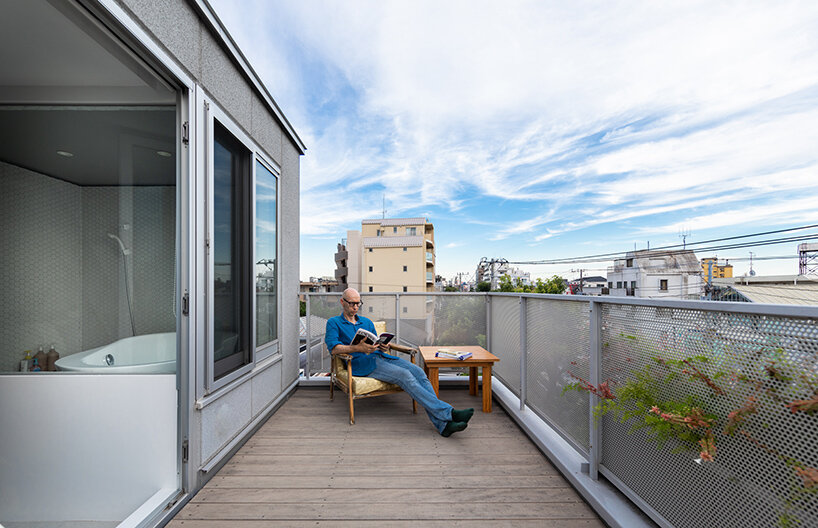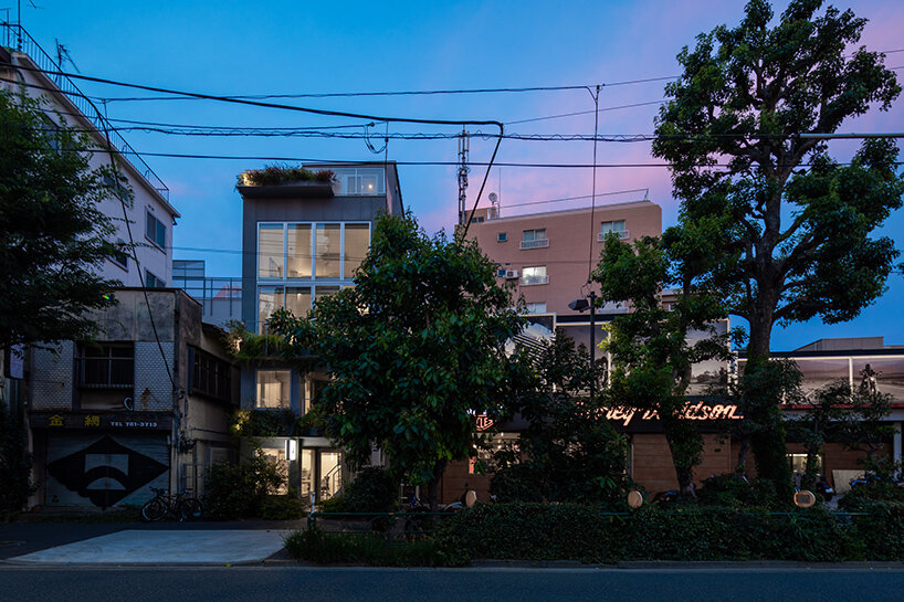 tokyo-based design studio van der architects unveils images of its house on kananadori in ôta city. the practice is led by martin van der linden, an architect who had been educated in the netherlands, the UK, and japan. now, photographer vincent hecht captures the work of architecture which houses a combined studio and residential program. the project integrates office space on the lower levels with a living space above — all with an airy, light-filled atmosphere.