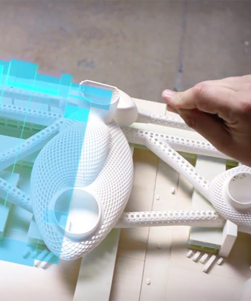 using microsoft hololens and trimble technology, lynn was able to experience his 3D models as holograms placed in the real world. the technology enabled the architect to quickly analyze various scenarios in the context of the physical environment, consequently shortening the design cycle. ‘trimble mixed-reality technology and microsoft hololens bring the design to life and bridge the gap between the digital and physical,’ explained greg lynn. ‘using this technology I can make decisions at the moment of inception, shorten the design cycle and improve communication with my clients.’