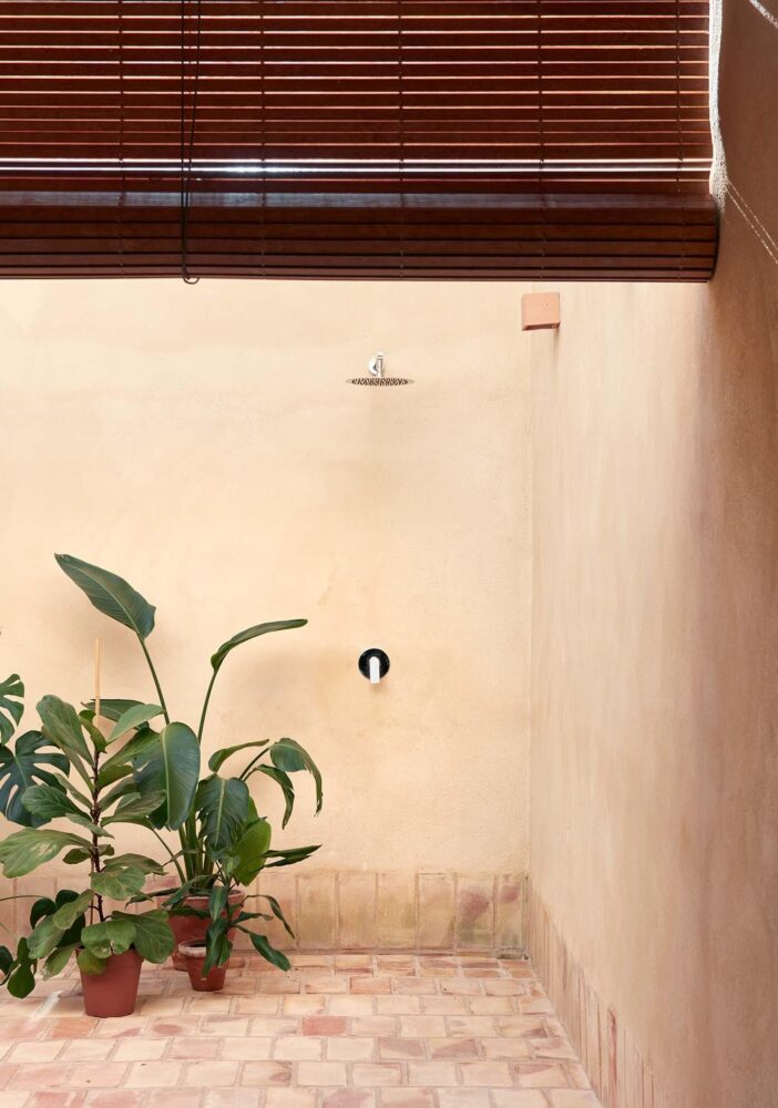 the project sits like a ring placed over the terrain, with its funnel-like roof forming a shaded perimeter walkway and an introverted core.