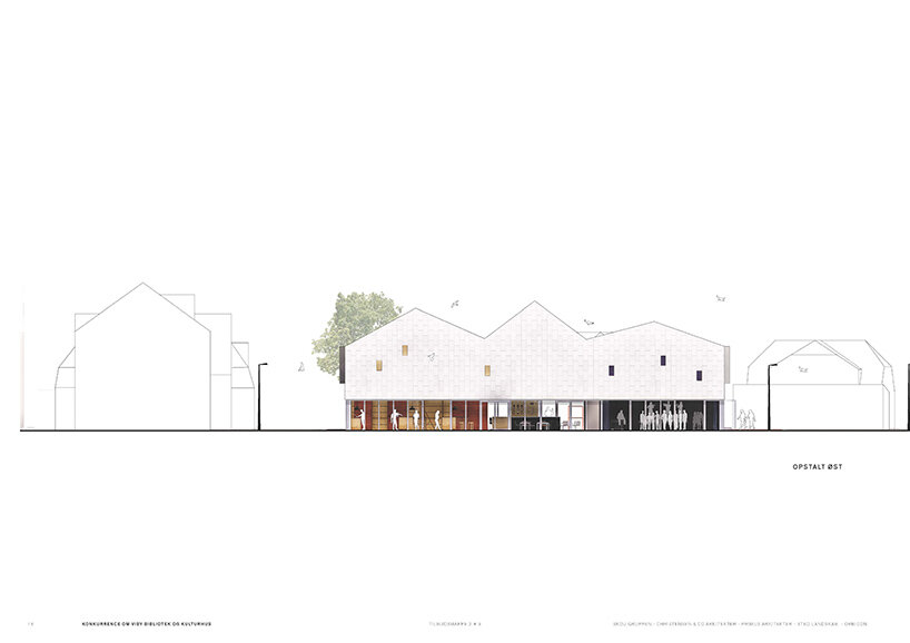christensen & co. architects tops this viby library with a minimalist row of danish rooftops