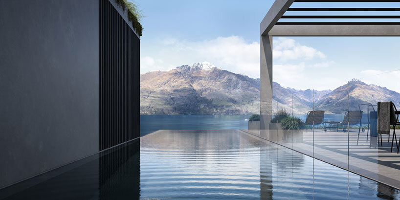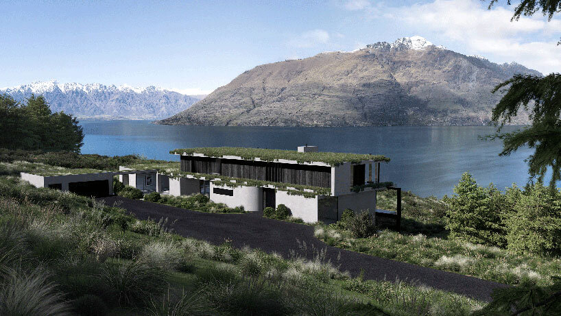 the project sits like a ring placed over the terrain, with its funnel-like roof forming a shaded perimeter walkway and an introverted core.