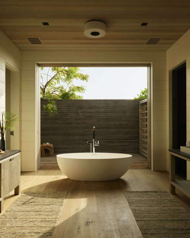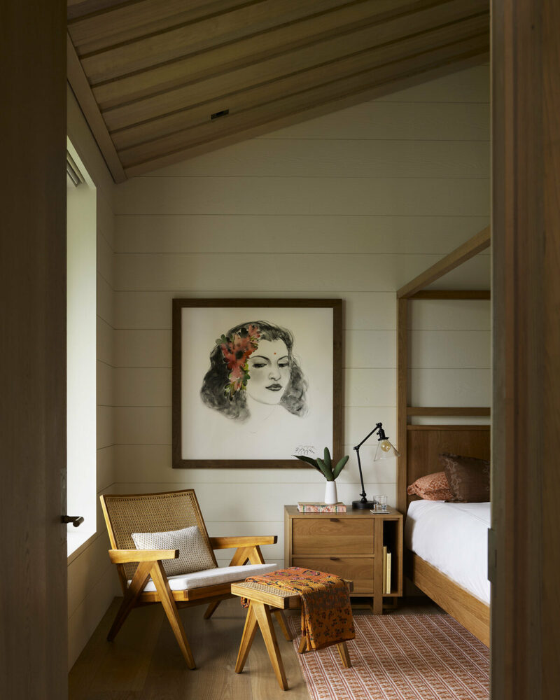 Indian textiles and artwork add subtle pops of color within the pared-down palette