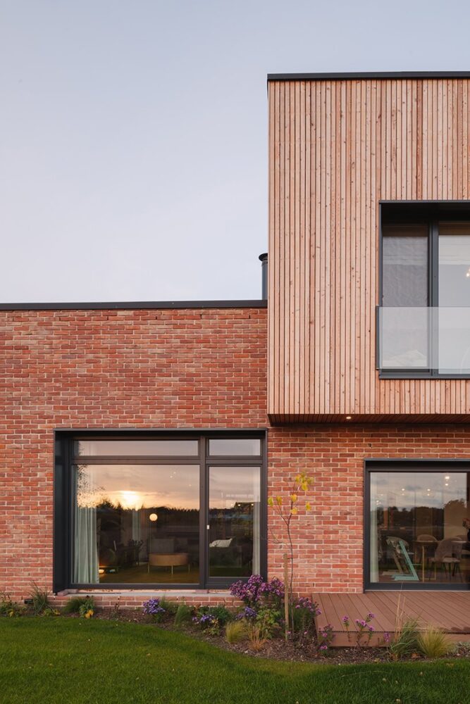 warm-toned wood and brick façades complete family home in poland by studio GAB