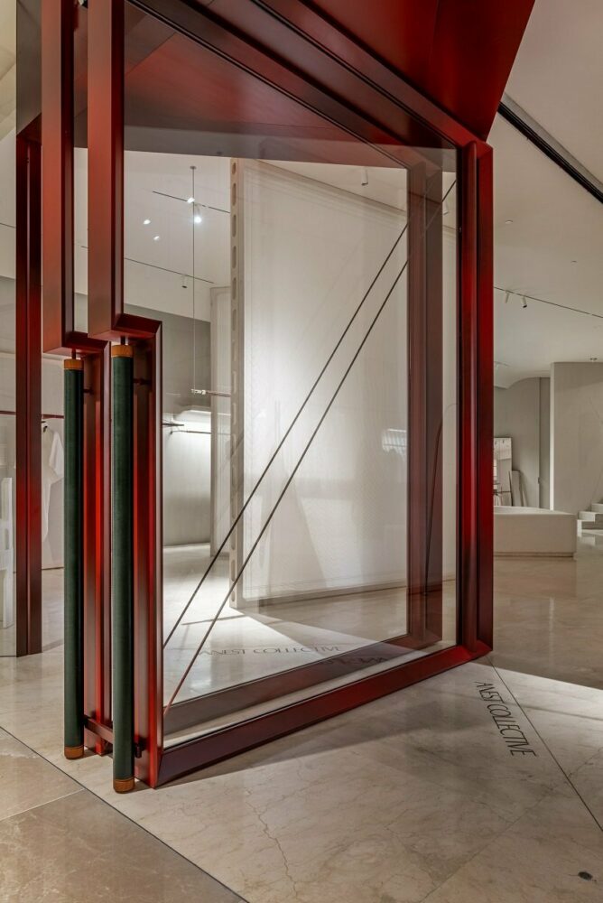 The design process embraces imperfection and the ‘unfinished,’ exploring materials, experimental combinations, and beauty in the often-overlooked incomplete state. The creative process involves imprecise arrangements, scattered materials, and spontaneous experiments, all of which can inspire the next idea. The Italian workshop serves as the genesis of ANEST’s narrative, symbolizing unyielding inspiration and uncompromised intuition. The studio, with its interim setups and scattered visuals, embodies the freest state of creativity, shaping the storefront layout with overlapping frames, fireplaces, and paneling.