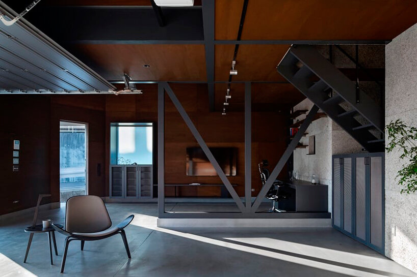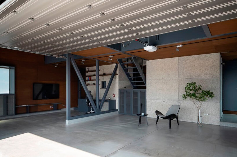 Taking industrial style as a guiding principle, the team at slow architects aligns the design with the client’s requirements, with an emphasis on materials and spatial configuration. The exterior facade boasts a fusion of Galvalume steel sheets and slate waves, presenting a visually uniform composition. Inside, the material selection includes concrete for the flooring, Lauan plywood, and wood wool cement boards. The materiality is intentionally revealed to expose the underlying structural elements. FACTORY HOUSE fuses design and functionality offering a unique and minimal setting.