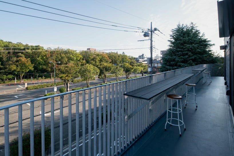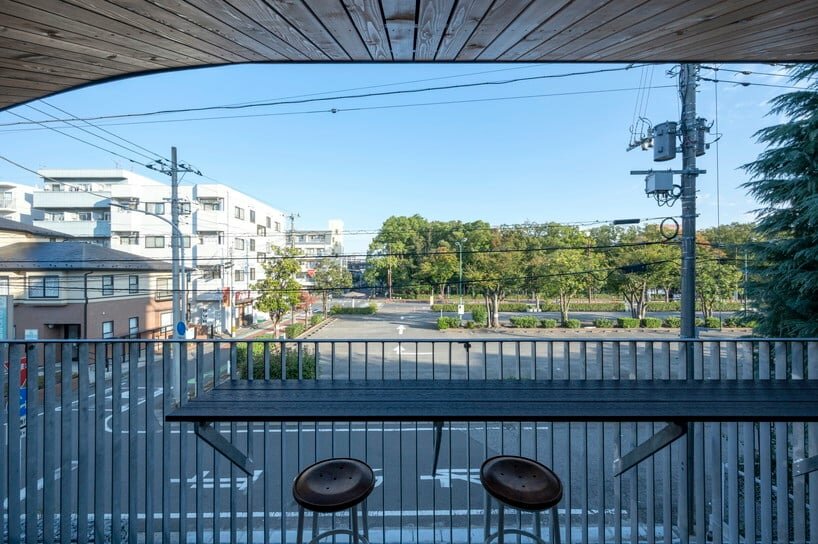 Located between a residential and a commercial district, ‘En-hako BLDG’ by architectural studio Organic Design nestles among offices enjoying views towards the greenery of a nearby park, providing a ‘perch’ forming wavy verandas on each side of the facade that serve as a familiar landmark for the community. Creating a visual and effortless flow in the area, the roadside veranda of the structure appears to reach out toward the busy neighborhood. The pair of elevated undulating balconies are covered in wooden eaves running along the curves of the construction.