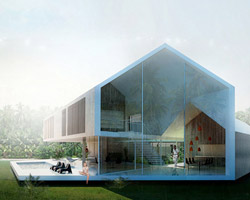 a continuation of the existing rock formations, the hotel is articulated as a series of stepped horizontal planes, courtyards, and gardens.
