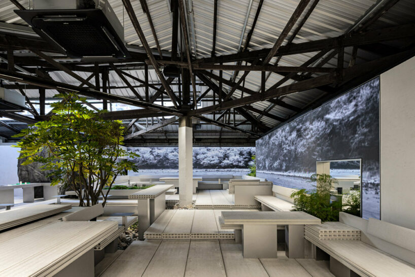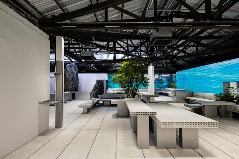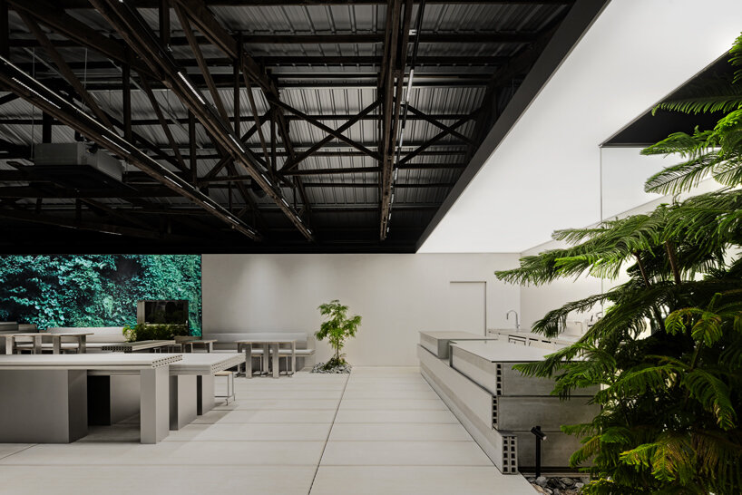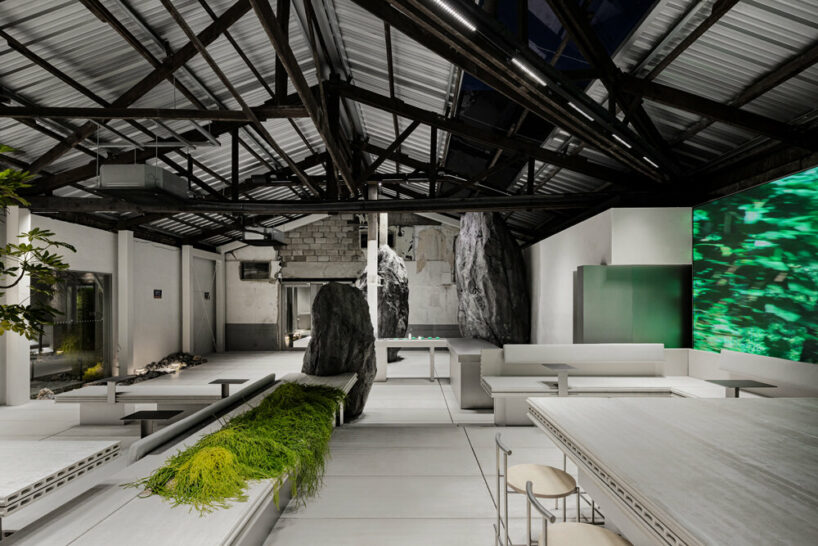 WGNB's beauty store in seoul recreates imaginary island landscape with giant rocks a fresh palette of whites intertwined with bursts of greenery
