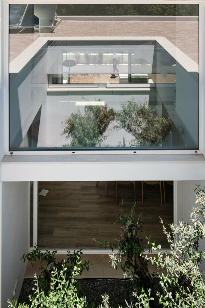 Algarve-based architecture company Studio Arte has completed the project of a family residence ‘Casa Simão’, located in the picturesque region of Messines in the Portuguese countryside. The structure puts up a pure white volume pierced by large angular glass windows offering tailored natural sunlight. The property is, also, distinguished by a series of terraces that apply wooden decks and ceramic tiling. The outdoor patios form a prominent pool and various lounge spots while shaping several geometric open voids that serve as atriums.