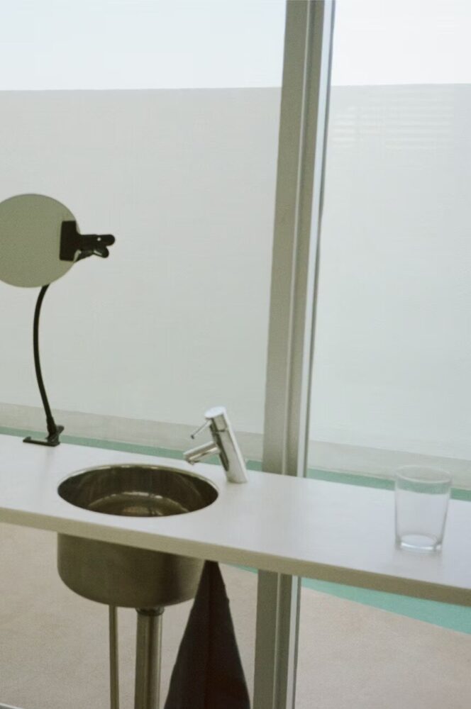 the project sits like a ring placed over the terrain, with its funnel-like roof forming a shaded perimeter walkway and an introverted core.