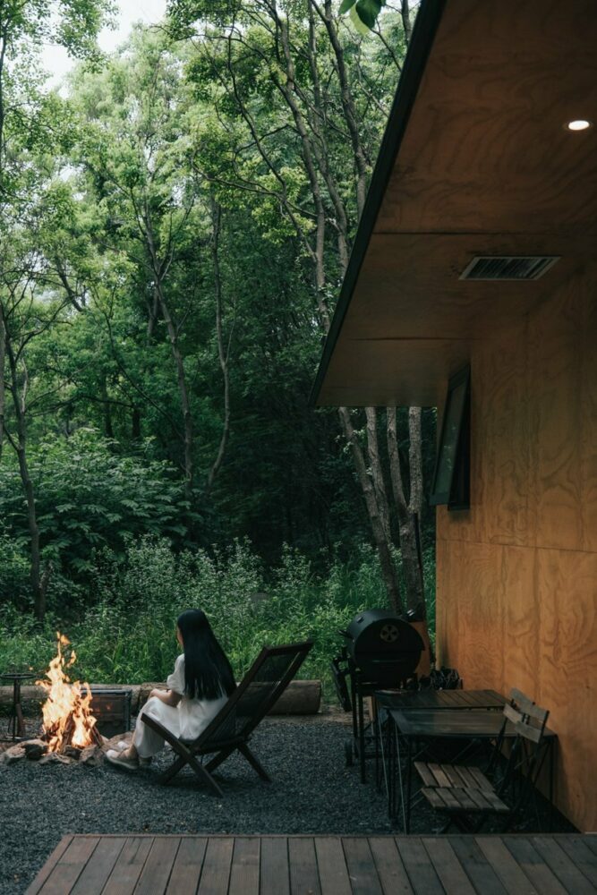 Reflecting on the cabin, the owner, Paul, writes: ‘This wooden house, for me, is both a reward and a place to come and catch my breath when I feel overwhelmed. The future lifestyle I imagine will be more about the experience than achievement; pursuing achievement often comes with anxiety, while experience is easier to obtain and more grounding and enriching.’