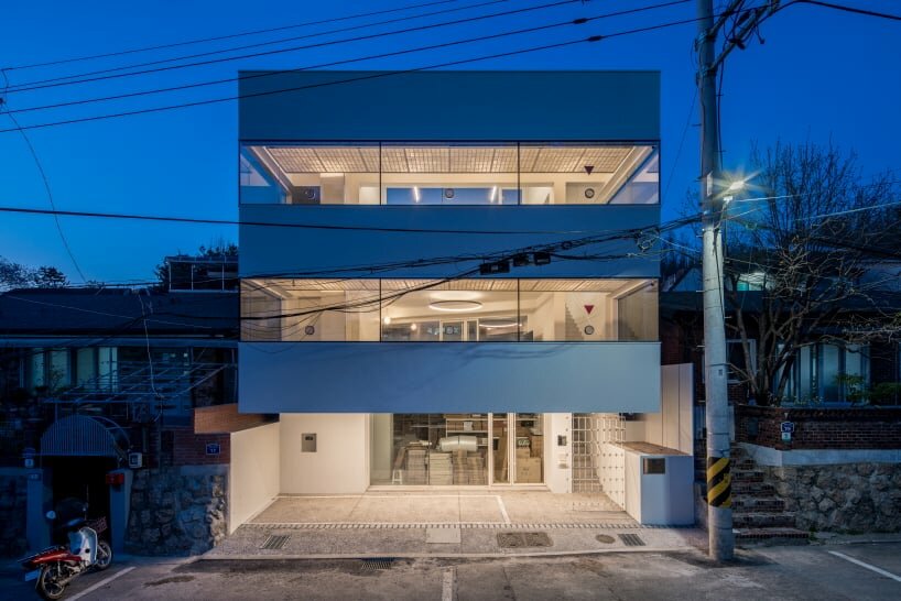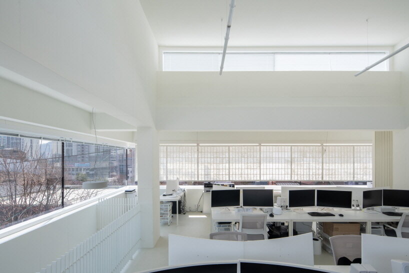 wood hanji shades and intricate metal screens wrap liso architects white office in korea