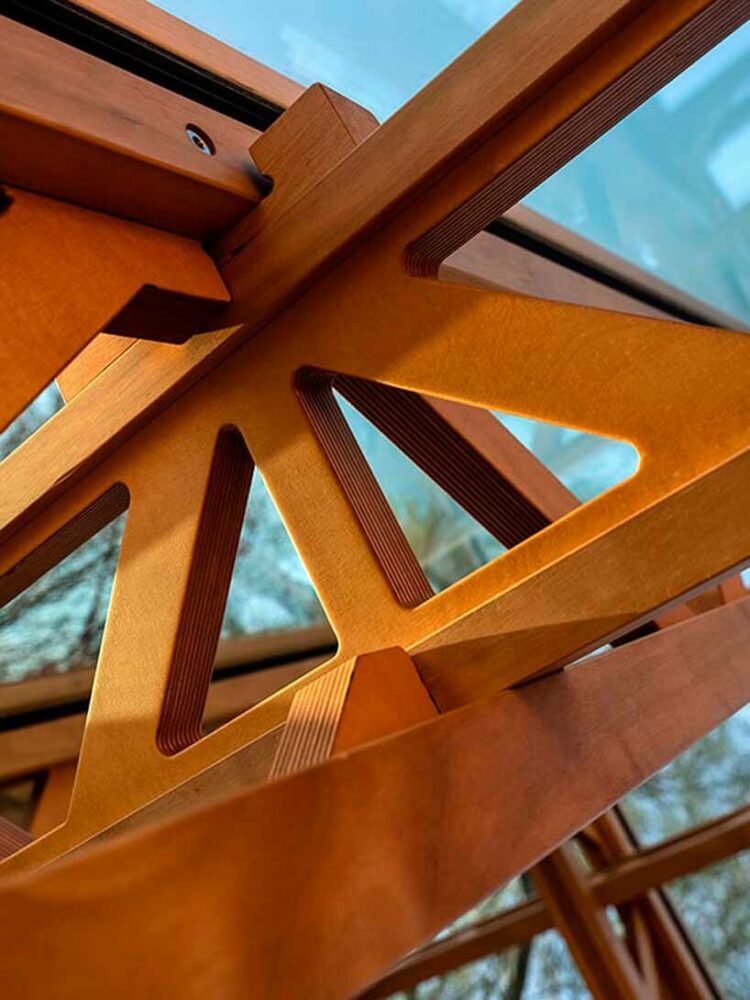 the insulated wooden structure composes the outer shell, while the inner shell is made of double glazing
