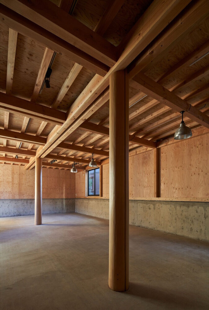 the design team opted for lightweight two-storey construction that responds to the different uses. for the purpose of photo studio use, the openings on the first floor were suppressed. by doing so, the daylight that penetrates the interior is limited and controlled.