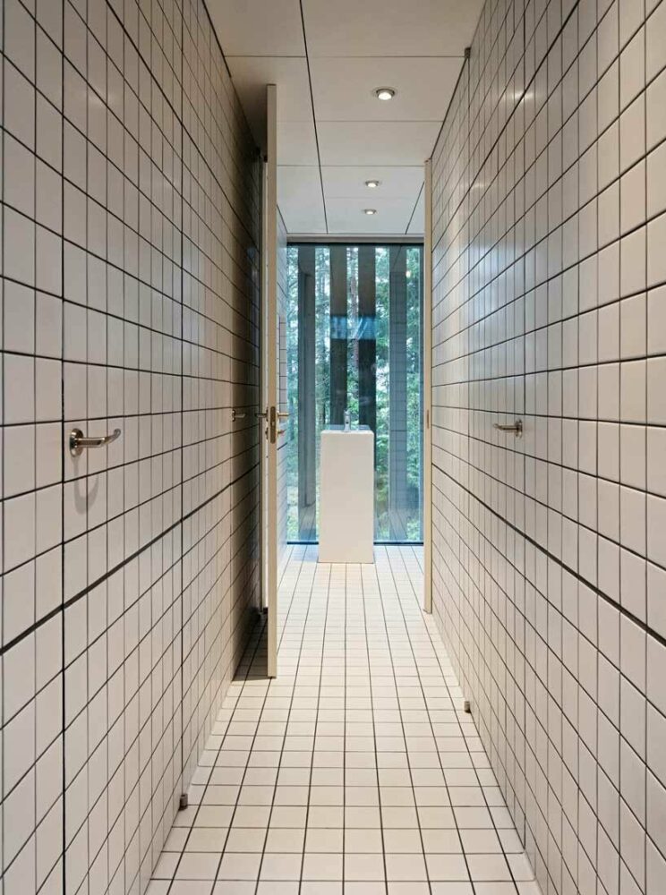Swedish architectural studio Byggfenomen takes over a domestic villa program congested inside a fence-like facade located in a coastal area of Stockholm. Standing on the eastern waterfront region of the capital, the residence is surrounded by weathered pine trees that divide the landscape plane into vertical strips while the low and harsh ground cover gradually transforms into naked bedrock towards the waterline, a typical disposition of seafront topography. Emerging from the dense vegetation, the wooden cladding enclosing the structure expands vertically fusing with the woodland and leaving specific external surfaces uncovered. The openings set up glass frames overlooking the scenery. Deviating from conventional villa-type structures spreading the program on the site, ‘Fenced Maximalism’ assembles all functions within the defined plan, namely the lawn, flowerbed, pond, gravel, breakfast terrace, evening terrace, conservatory, social space, guestroom, bedroom, bathroom, wine cellar, kitchen.