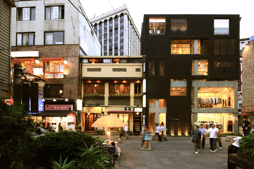 facade details 1. T1.6 steel plate 2. steel plate capping 3. traditional brick 4. 30×30 square pipe 5. 20×20 square pipe 6.L-angle 100x100x10T 7. by other’s finish 8. grass on light soil 9. T3 steel plate molding 10. T50 insulation 11. plant box 12. T12 tempered glass 13. cedar exposed concrete finish