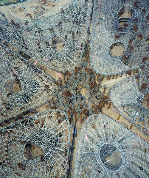 with its steel structure now complete, progress on beijing’s new international airport terminal is racing ahead. designed by zaha hadid architects (ZHA), the vast project was announced in early 2015 following an international competition held in 2011. currently unnamed, the 313,000 square meter development is being constructed to ease the burden on the chinese captial’s existing airport, which is currently operating at full capacity.