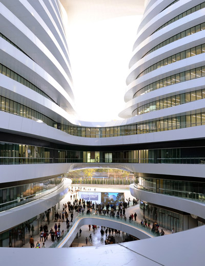 the first three floors of the ‘galaxy soho’ are dedicated retail office and entertainment spaces image © designboom