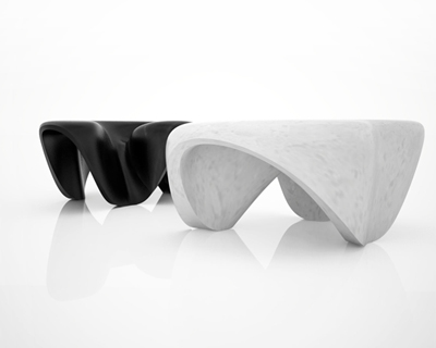 zaha hadid continues her collaboration with citco in the form of ‘mercuric’ to be presented 2013 salonedelmobile. while last year the architect designed the ‘secret garden pavilion’ for the marble company, this year’s collaboration elevates the material through an object– tables.perceptions of marble as a baroque, old-world material are reframed by undulating, milled forms in part due to the ability of machinery to mimic precise sculptural craft. the tables are a total vision for an object and the configurable relationships between them. the three alternately white or black  pieces can be composed as the user sees fit.