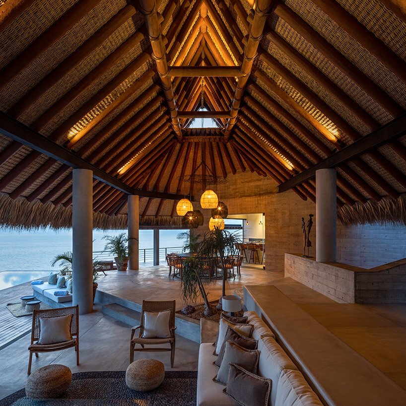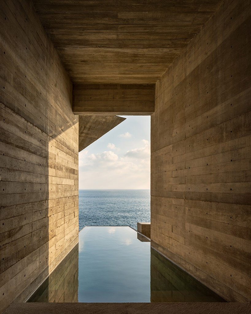 interiors are embedded into the cliff, and open broadly toward the ocean below