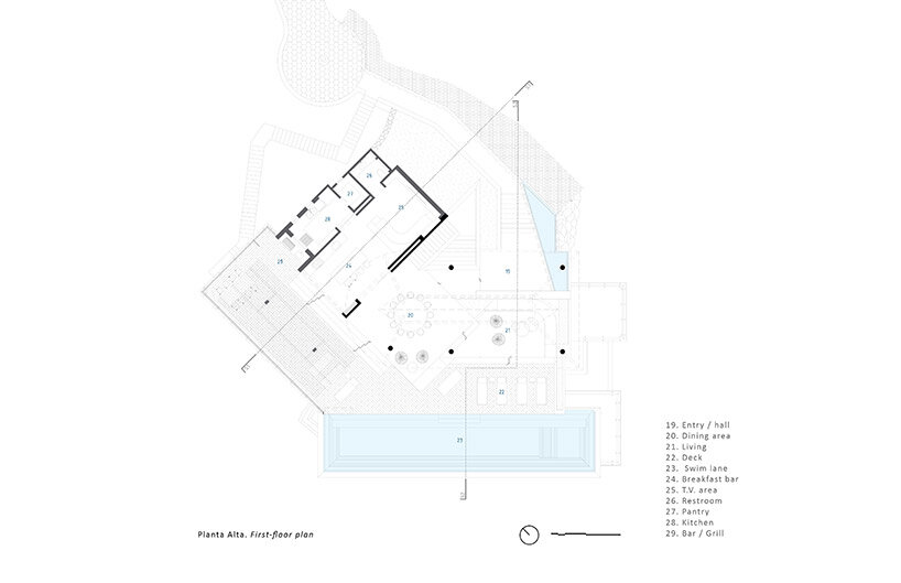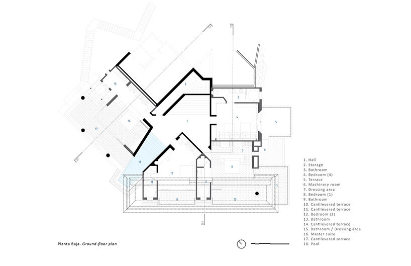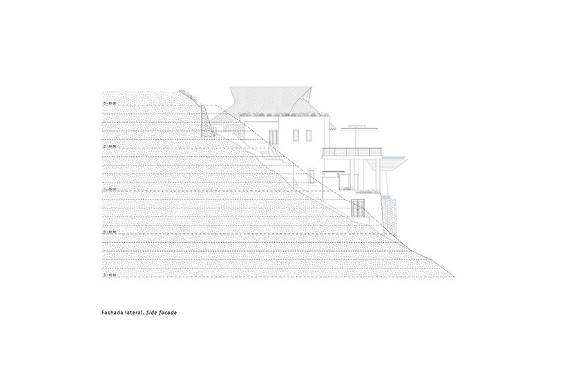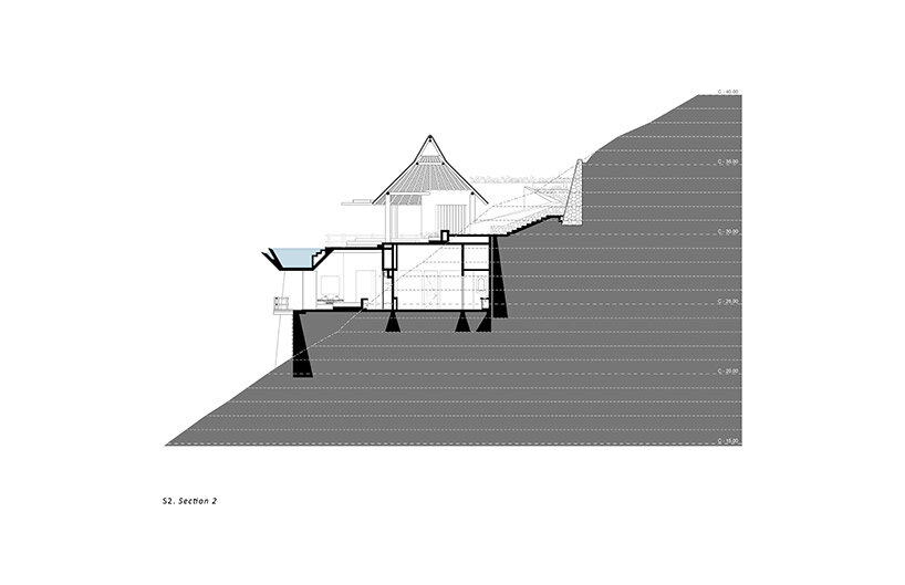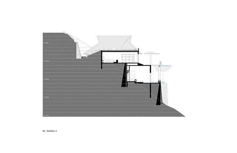 a continuation of the existing rock formations, the hotel is articulated as a series of stepped horizontal planes, courtyards, and gardens.