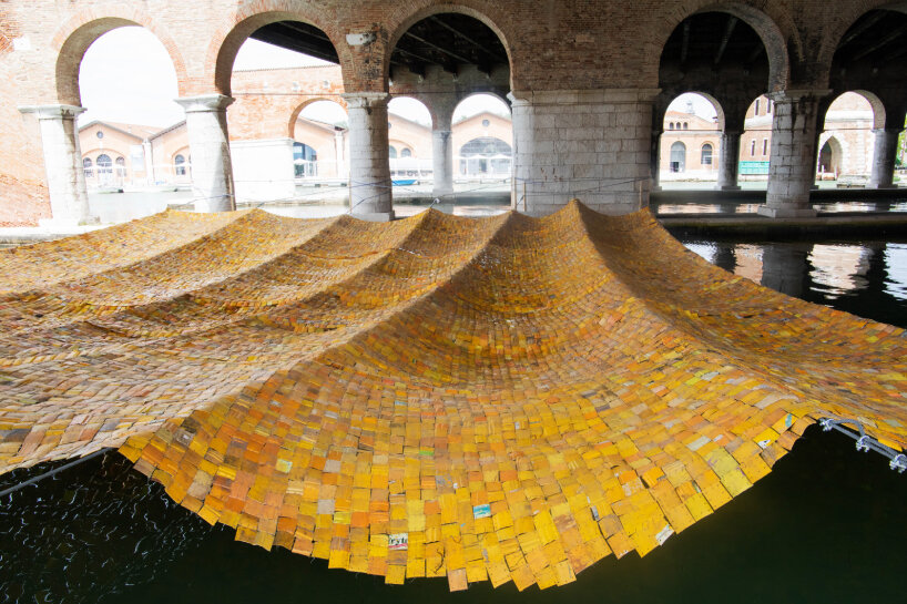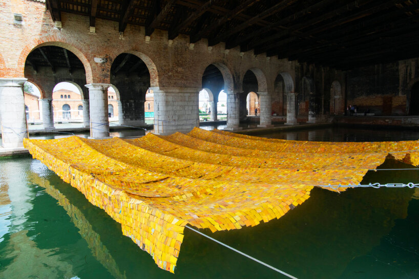 the works are staged within mangroves, tidal waterways, and open sky, allowing technology and environment to operate as a single system.