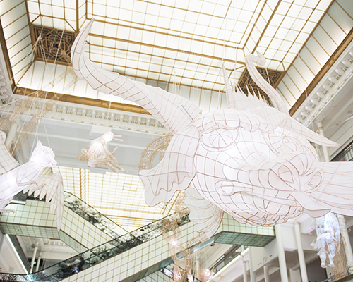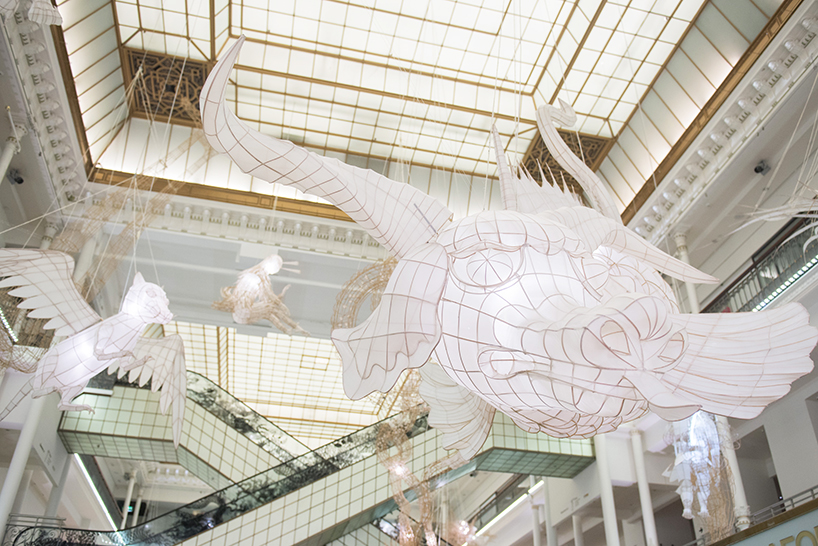 ‘showing at le bon marché is using a new medium, the department store, to encounter a new audience as broad as a museum’s,’ ai weiwei describes. ‘introducing the fantastic idea within a retail space strikes the imagination of customers, visitors and passersby. we all lead parallel lives in this other world of dreams, fantasies and fears. we must learn to coexist with them, as they are an integral part of our humanity; to embrace our mythology. children know how to do this naturally. this exhibition speaks to our inner child.’