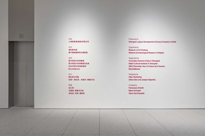 Conceived and designed by world-famous Italian designer Aldo Cibic, and his partner Joseph Dejardin, the exhibition ‘A World of Beauty’ at the Museum of Art Pudong (MAP) unfolds a world where China and Italy, Shanghai, and Naples, celebrate timeless beauty –‘The beauty that reveals itself spontaneously, an expression of harmony in the world of nature, the human world, and in the great works of human beings, beyond the distinctions of culture and material.’ The exhibition presents masterpieces from the National Archaeological Museum of Naples, including sculptures, paintings, mosaics, bronzes, and glasses, and juxtaposes them with the darkened, labyrinthine spaces and bold colors of the Chinese museum.