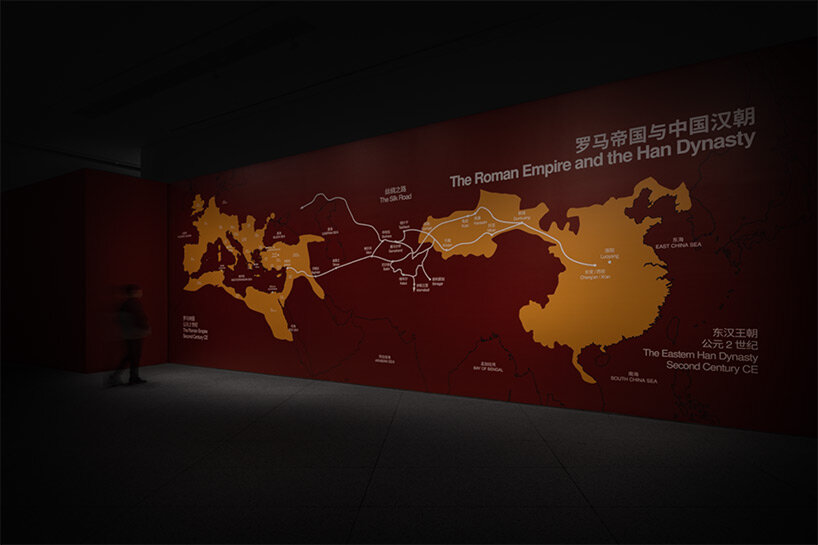 The first foor of the museum hosts an introductory film that explains the importance of the National Archaeological Museum of Naples and a pair of Aphrodite sculptures that set the tone of the exhibition. Moving on to the upper levels, visitors find a chronology and mapping of the Roman Empire that follows that of the Han Dynasty, highlighting the fundamental importance of culture and beauty within civilizations and the importance of their exchange.