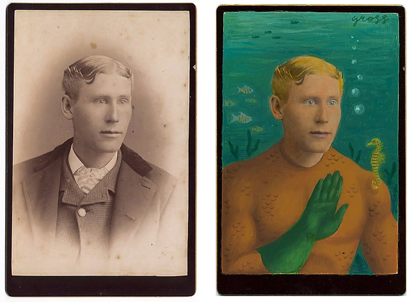 left: ‘creature’ mixed media on antique photograph, 7 x 5 inches right: ‘cyclops’ mixed media on antique photograph, 7 x 5 inches