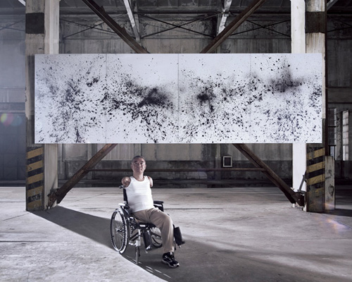 through deep concentration, electronic signals from their brains were captured and sent to a neurosky processing unit that triggered the detonators, which resulted in the formation of abstract paintings. 800,000 renminbi (about USD 130, 700)  from the painting auction was donated to various charities. the results were, quite literally, mind blowing, as the team describe, ‘we showed that although the bodies of disabled people are handicapped, their minds aren’t.’