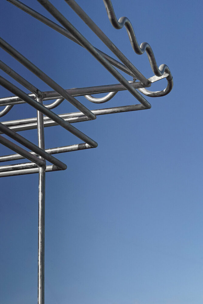 More importantly, the final structure takes inspiration from the image of a traditional Ukrainian house; envisioning it as a ‘home away from home’ for polar researchers, the architects designed the installation based on a composite image of a Ukrainian rural house. ‘A thin detailed frame around the tank resembles a pencil sketch: as if someone, reminiscing, draws their childhood home from memory,’ notes the balbek bureau team.